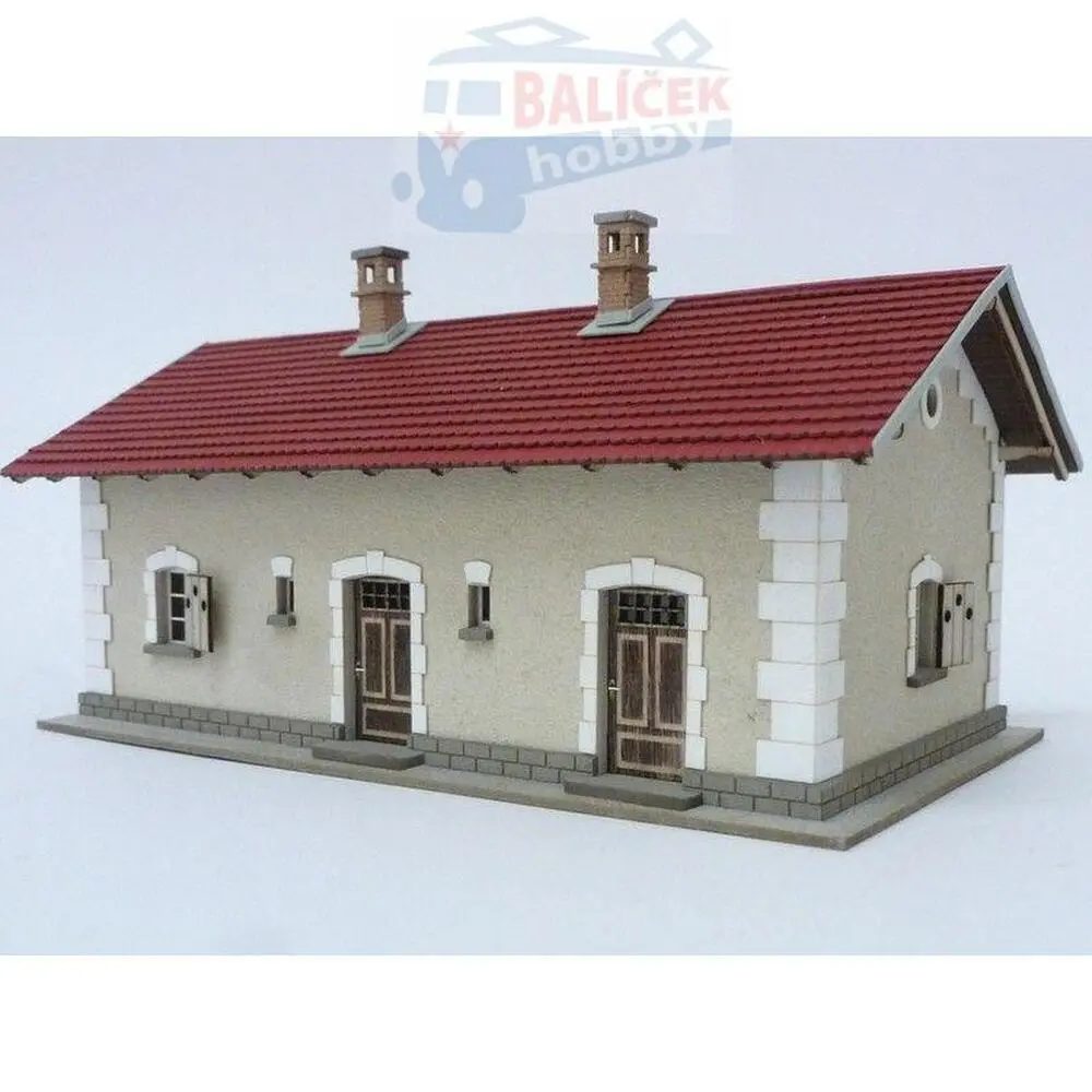 Stavebnice budovy čekárny s vedlejším bytem. Stavba je dle maďarských normálií. - obsahuje i rýny a hřebenáče.