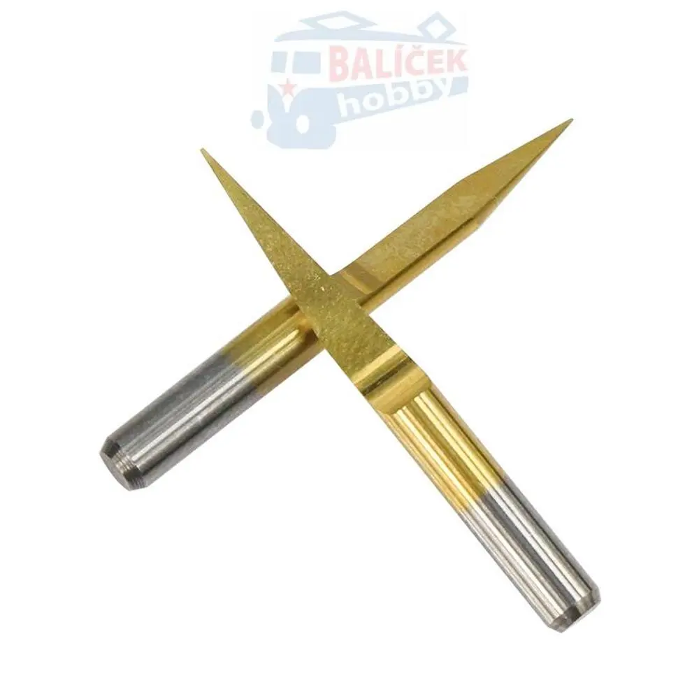 Gravírovací jehla pro CNC frézky vhodná k výrobě plošných spojů s titanovým povlakem.
