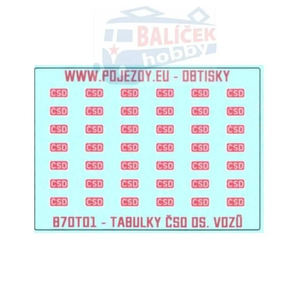 Obtisk obsahuje loga ČSD pro osobní vozy, umístěná obvykle na rámu pod dveřmi mezi schůdky.