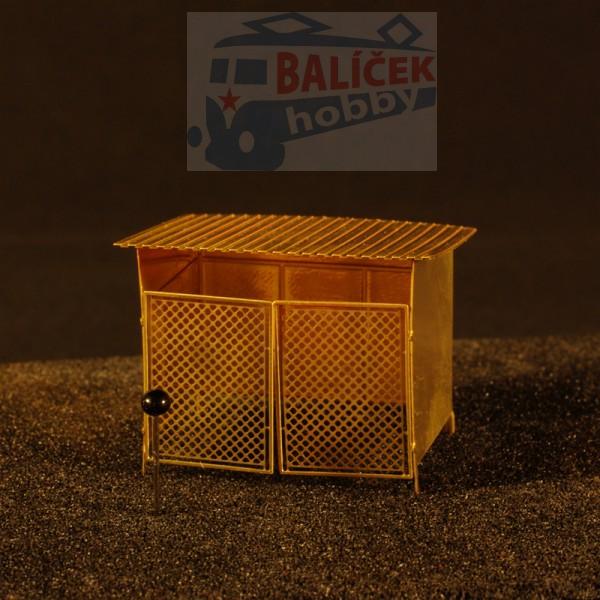Leptaný plechový přístřešek na nářadí a drobná zařízení v měřítku H0. Bývá k vidění např. u odstavných kolejí nebo v technickém zázemí.