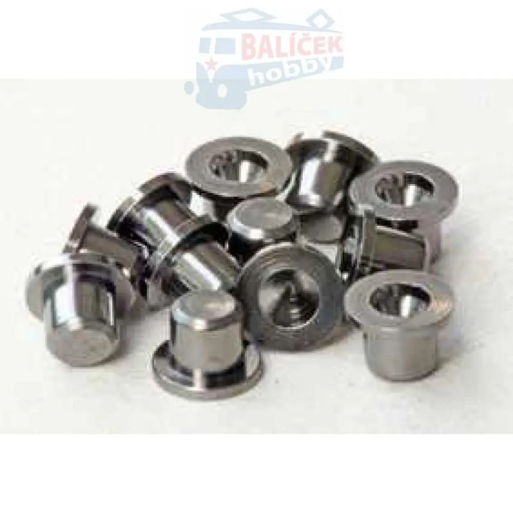 Sada 12 kusů mosazných soustružených pouzder, určených pro náhradu hrotového uložení os dvojkolí do plastu. V tomto provedení jsou niklované a s dorazovým okrajem. Po jejich osazení dochází k podstatnému zlepšení jízdních vlastností modelu.