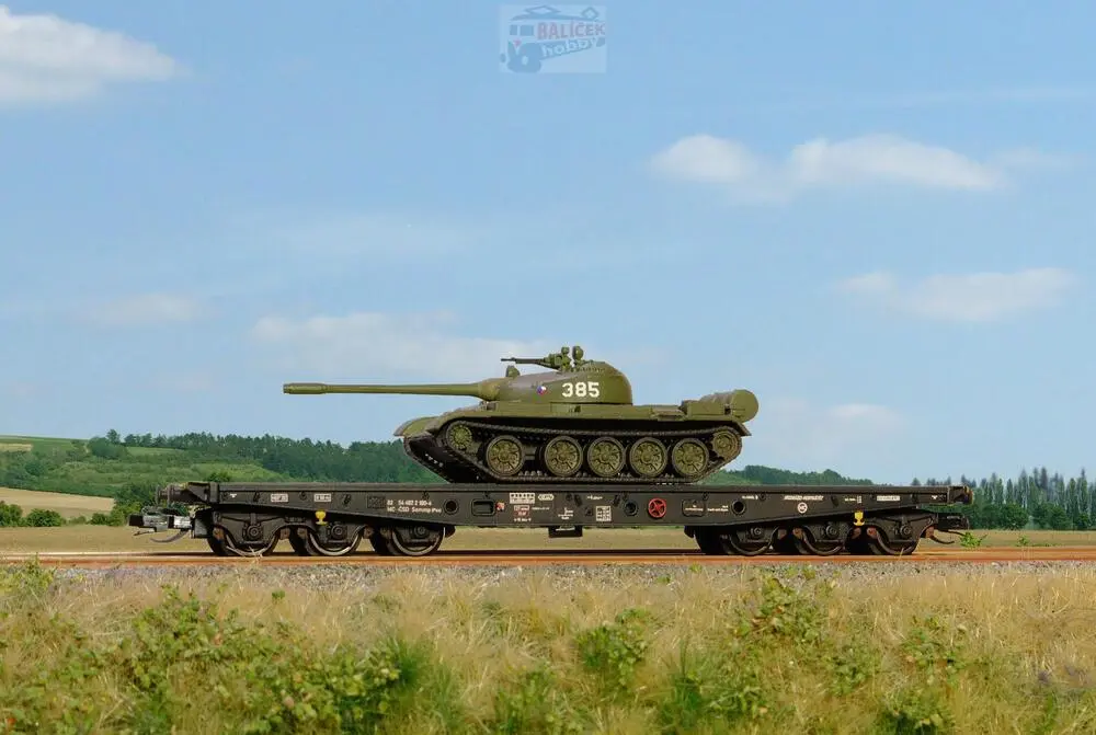 Plošinový vůz Sammp 10 s tankem T-54/55 ČSD 1:120