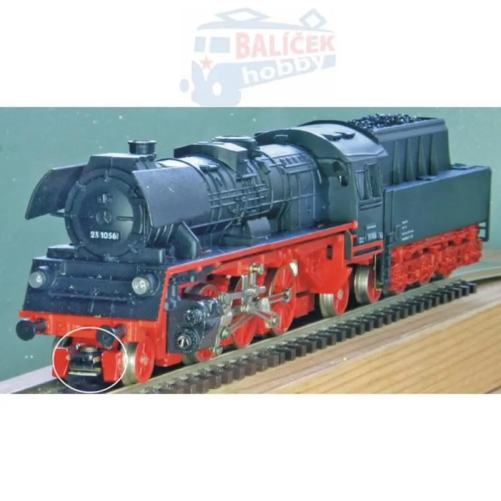 2x kinematika krátkého spřáhla, 1x plastové díly, 1x šroub, návod. Sada umožňuje i krátké spojení tendru s lokomotivou.