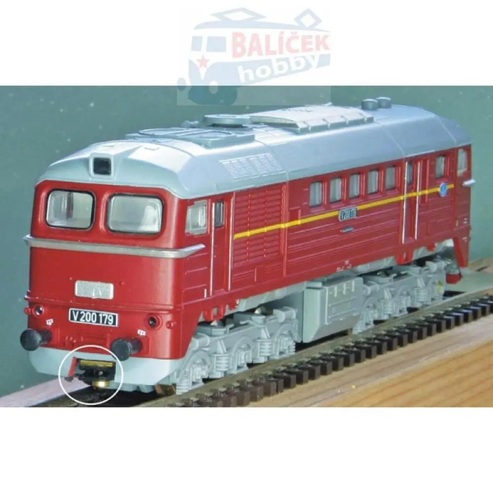 Sada sestává ze dvou samovratných otočných šachet NEM s magnetem (viz P 110), plastového dílu a návodu a je určena pro úpravu uchycení spřáhla u "Sergejů" V 200, BR 120, T 679.1 od firmy Tillig.