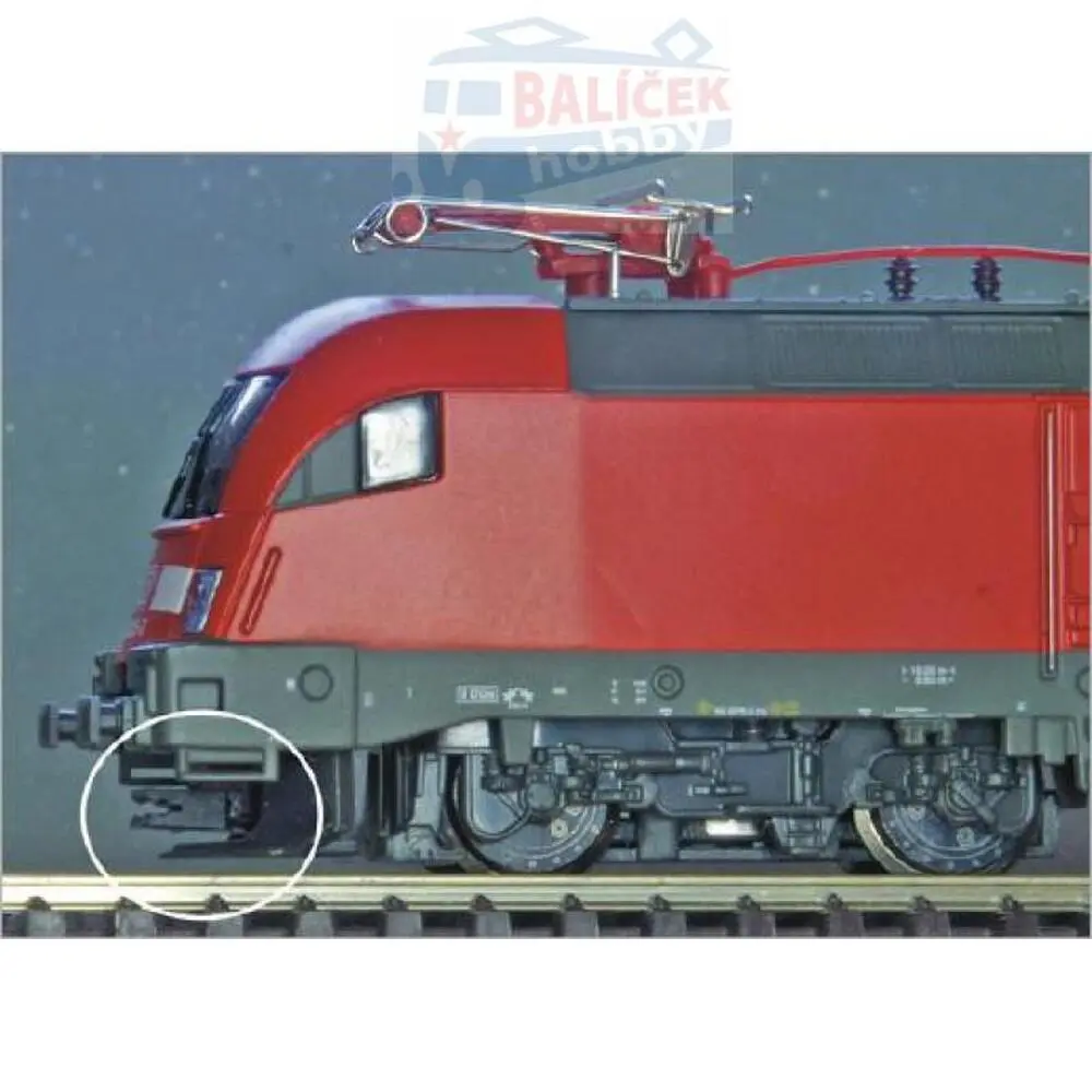 Sada pro úpravu upevnění spřáhla na el. lokomotivách Taurus výrobce PIKO. Sada obsahuje dvě šachty spáhla a dva plastové díly k nim a návod.