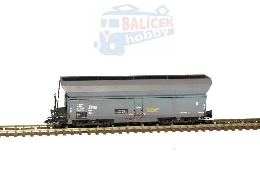 Kompletní stavebnice samovýsypného vozu. Obsahuje probarvené plastikové výlisky na sestavení modelu včetně kinematik, spřáhel a kvalitních soustružených kovových dvojkolí, kovové lepty, závaží a obtisky. Provozovatel Československé dráhy, IV. epocha.