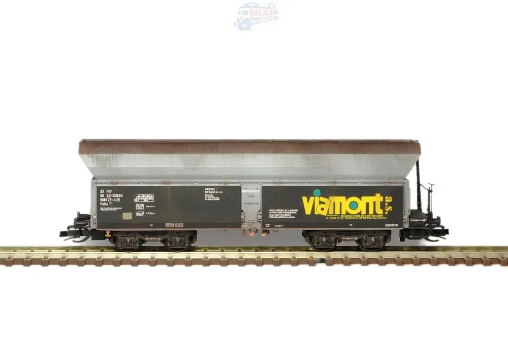 Kompletní stavebnice samovýsypného vozu. Obsahuje plastikové výlisky na sestavení modelu včetně kinematik, spřáhel a kvalitních soustružených kovových dvojkolí, kovové lepty, závaží a obtisky s dvojicí provozních čísel. Provozovatel Viamont, V-VI. epocha.