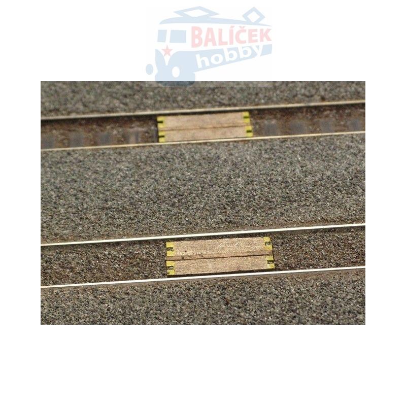 Stavebnice obsahuje čtyři kolejové přechody v nebarveném stavu (kombinace karton/překližka).