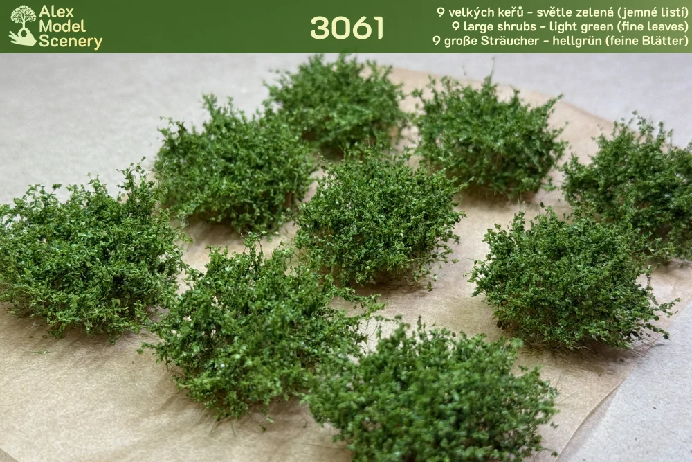 Devět velkých divokých bohatě sypaných realistických keřů pro zkrášlení krajiny. Napodobuje zdivočelé myrobalány, svídy a trnky, které se hojně vyskytují na náspech, podél trati a v jakémkoliv neudržovaném zákoutí.