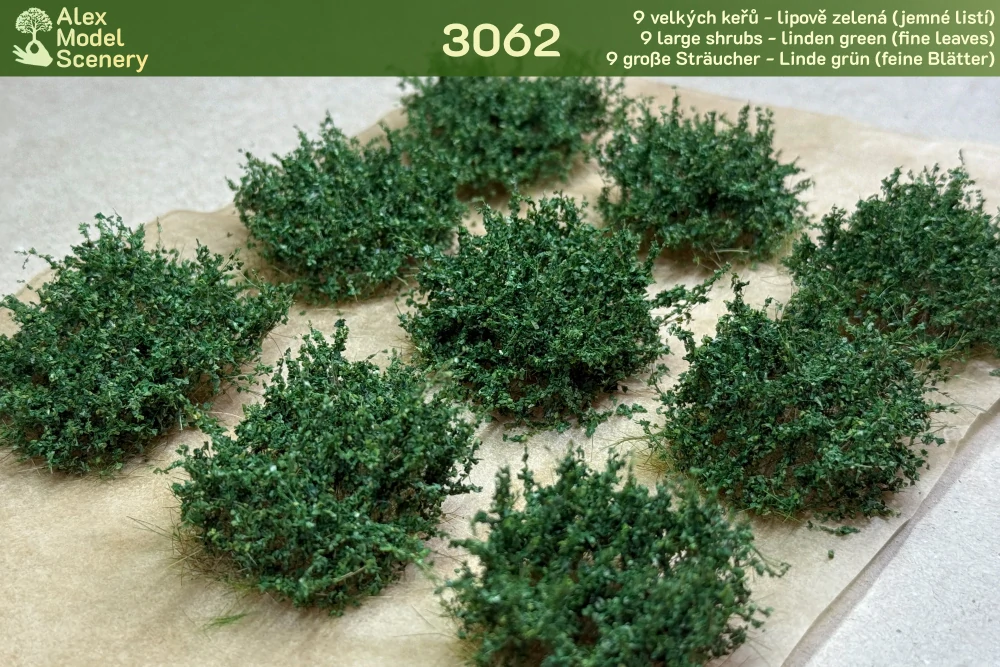 Devět velkých divokých bohatě sypaných realistických keřů pro zkrášlení krajiny. Napodobuje zdivočelé myrobalány, svídy a trnky, které se hojně vyskytují na náspech, podél trati a v jakémkoliv neudržovaném zákoutí.