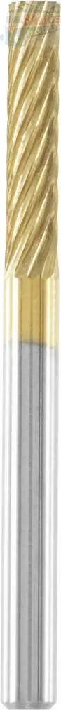 Mimořádně pevný bit je vyrobený z tvrzené oceli (HSS) a potažený nitridem titanu (TiN) a můžete se s ním pustit do náročných kutilských projektů, které vyžadují přesnost. Příslušenství o velikosti 3,2 mm lze používat na agresivnější aplikace k obrážení, vyhlazování nebo broušení tvrdých materiálů, jako jsou kovy, tvrzená ocel, pálená keramika, lité železo, plasty a tvrdé dřevo. Řezací bit dobře slouží při projektech, jako je rytí do kovu či dřeva, vyřezávání do kamene nebo odstraňování otřepů z odlitků. Válcovitá hlava řezacího bitu umožňuje hloubkové odebírání materiálů, řezání plochých míst, zaoblování hran i provádění dorazových řezů a v-drážek. Hrotem příslušenství lze vytvářet výřezy a drážky s plochým dnem, ploché boční řezy a v-drážky pod úhlem 45 stupňů.