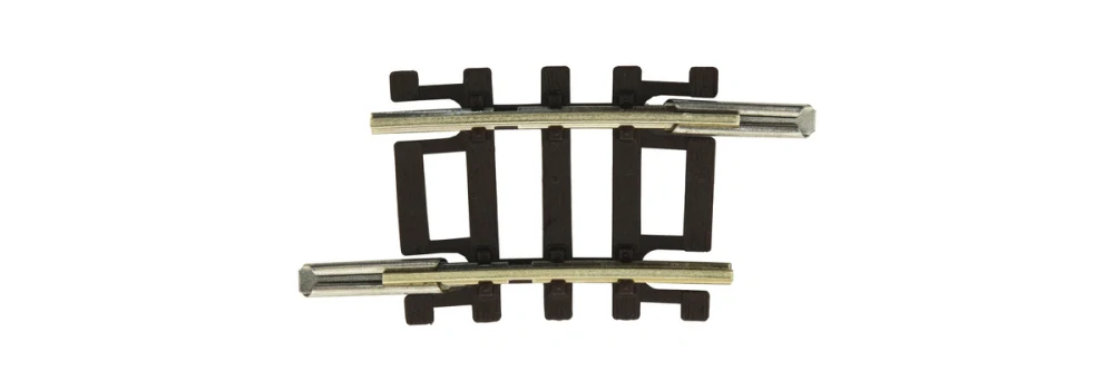 Profilové koleje vel N s výškou kolejnice 2,1 mm, imitace dřevěných pražců.
