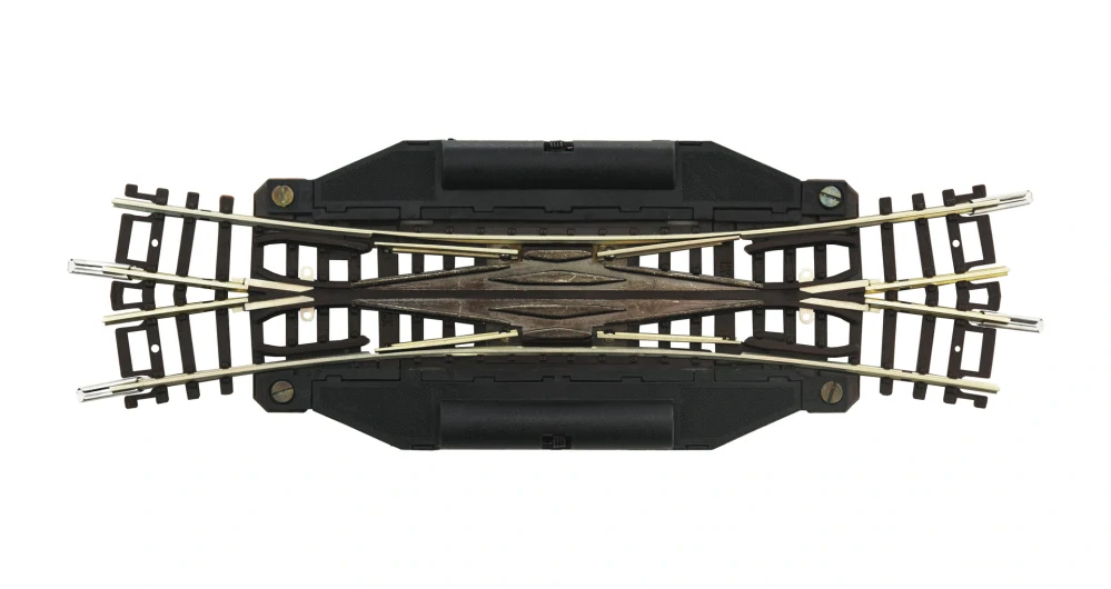 Dvojitá výhybka s elektrickým výhybkovým mechanismem.