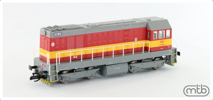 ČSD 721 199Předloha modelu byla vyráběna v ČKD Praha v letech 1959-73, jako větší a težší verze lokomotivy T435. Byla určena pro export do SSSR, pod stejným označením ČME2. Současně bylo 220ks dodáno ČSD, kde získaly vetší uplatnění než T435. Model dle lokomotiv 5. serie (od č T458.1140)) s trojdílnými okny kabiny. Model je vybaven motorem se setrvačníkem, přepínatelným osvětlením, dle směru jízdy, zvlášt zapínatelným reflektorem (pouze digitál), osvětlením stanoviště strojvedoucího. Lokomotiva vybavena rozhraním Next18S.