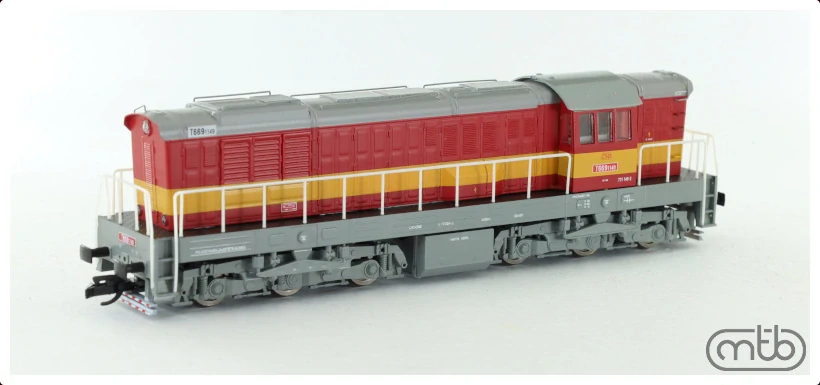 CSD T669 1149Diesel-elektrická lokomotiva řady 771 (ex. T669.1). Model je vybaven motorem se setrvačníkem, přepínatelným osvětlením, dle směru jízdy, zvlášt zapínatelným reflektorem (pouze digitál), osvětlením stanoviště strojvedoucího. Rozhraní Next18S. Motorová lokomotiva řady 770 byla pod původním označením T 669.0 dodávána lokomotivkou ČKD Praha a podnikem SMZ Dubnica nad Váhom pro potřeby ČSD a průmyslu v ČSSR. Sériová výroba probíhala v letech 1967 až 1969. Lokomotivy řad 770 a 771 jsou určeny k posunu ve stanicích a na seřaďovacích nádražích i na traťových výkonech v nákladní dopravě. K modelu jsou přibaleny doplňky (spřáhla, stěrače, hadice, háky)