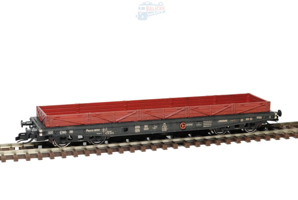 Kompletní stavebnice nízkostěnného vozu řady Paon (Rlmm) 10. Obsahuje probarvené plastikové výlisky na sestavení modelu včetně kinematik, spřáhel a kvalitních soustružených kovových dvojkolí, kovové lepty, závaží. Obtisk obsahuje nápisy vozu pro III. i IV. epochu, provozovatel Československé dráhy.