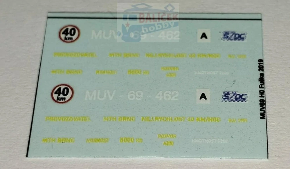 Obtisk - MUV69-462 H0Skladem 13 ks65,00 Kč/ ks53,72 Kč bez DPH