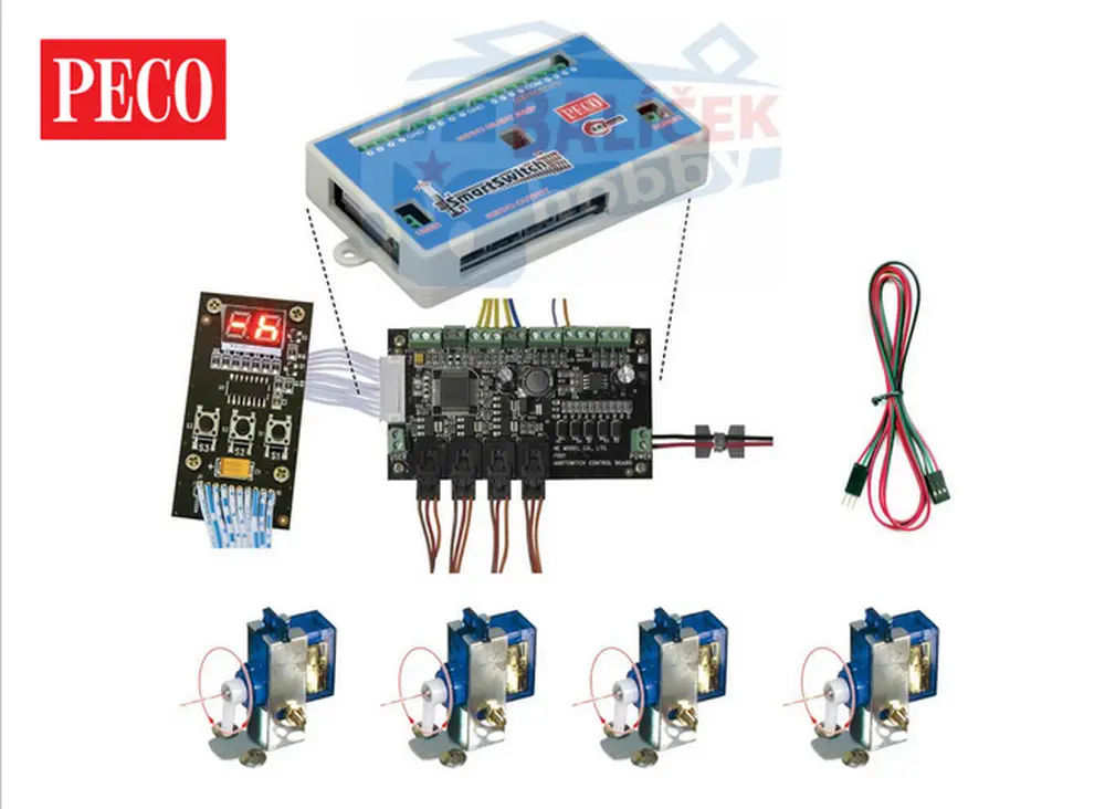 Systém Smartswitch(TM) lze použít k ovládání výhybek, semaforových návěstidel, přejezdových závor a závor a dalších pohyblivých prvků. Tato sada obsahuje 4 serva, ovládací vodiče, montážní držáky a spínače plus řídicí desku Smartswitch, programovací desku a také všechny důležité návody k použití. Podívejte se na videa, abyste viděli potenciální využití a snadnost instalace tohoto systému a prohlédněte si naši brožuru Shows You How č. 24 Provozní body a signály.