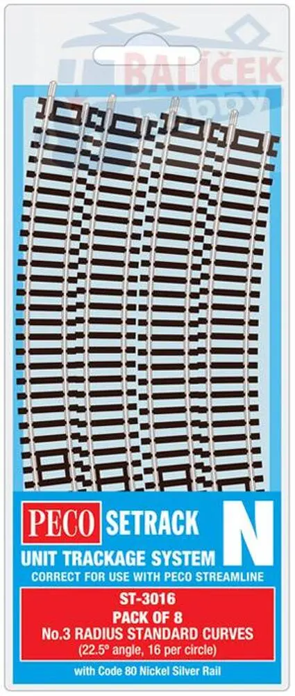 ST-3016 PECO - oblouková kolej R=298,5mm, 22,5° 8ks/baleníNení skladem593,00 Kč/ ks490,08 Kč bez DPH