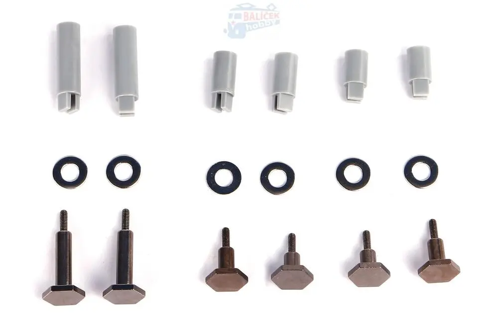 Sada 6 kovových náhradních klikových čepů šroubového typu. Tmavě poniklované šrouby. Vhodné pro malá startovací sada BR80 loco o průměru 36,5 mm (1,44“).
