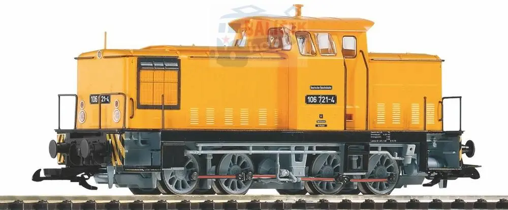 Modelem BR 106 nabízí PIKO další klasiku DR a splňuje tak přání mnoha zahradníků. Ušlechtilý a robustní model zaujme maximální spolehlivostí, kuličkovými ložisky, chromovanými dvojkolími a kabinou řidiče se strojvedoucím. Mnoho individuálně použitých detailů, jako jsou madla a stěrače čelního skla, završuje atraktivní vzhled posunovací lokomotivy. Model je připraven pro nekomplikované dovybavení digitálním dekodérem a zvukem. BR 106 od PIKO má dostatečně vysoké tažné síly a vynikající jízdní vlastnosti pro každou prototypovou oblast použití. Střešní anténa je výsuvná.