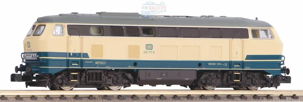 Novinka pro rok 2022: Varianta DB třídy 216 v béžově modrém provedení. V 60. a 70. letech 20. století byla lokomotiva řady V 160 nebo 216 rychlíkovou lokomotivou na německých spolkových drahách pro trasy bez trolejového drátu. Model tohoto důležitého typu vozidla nejen zaplňuje mezeru v řadě PIKO N, ale také obohatí řadu uspořádání modelové železnice z epoch III až V o četné varianty. Vývojový tým implementoval do modelu nápadný tvar originálu ve vynikající kvalitě a zároveň dosáhl ideálních jízdních vlastností. Tyto atributy podtrhuje efektní využití dokonalých rytin a do nejmenšího detailu harmonická povrchová úprava laku. Moderní LED technologie slouží jako základ pro změnu světla mezi červenou a bílou. Ve zvukové variantě má model BR 216 z výroby vhodný zvukový dekodér Next18. BR 216 přichází poprvé v sériové verzi s vysokým sériovým číslem. Ten se vyznačuje tlumičem hluku, zásuvkou UIC, čelní rukojetí a širokým stupněm. Obraz završuje mohutný sněhový pluh a klasické barevné schéma federálních železnic 80. let v béžové a oceánově modré.