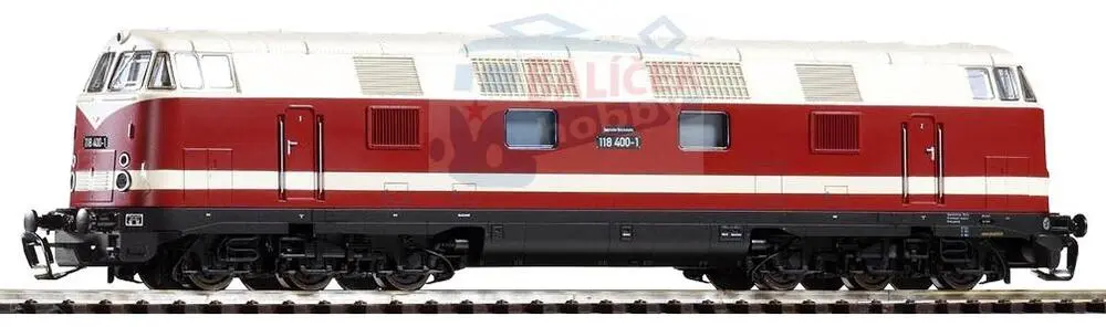 Nová podoba standardní dieselové lokomotivy DR řady 118. Model odráží šestinápravovou verzi v Ep. IV. Model má LW bílá/červená, výkonný motor se dvěma setrvačníky, dvě trakční pneumatiky, digitální rozhraní PluX a kinematiku krátké spojky. Zvukový modul #56197 lze dovybavit