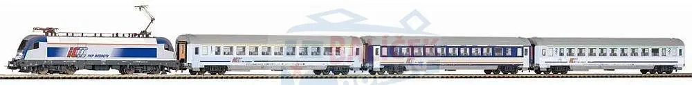 97931 PIKO - H0 - start set s elektrickou lokomotivou Taurus a třemi IC vozy, kolejivo s podložím, 12 x oblouk. kolej, 6 x rovná kolej, trafo + napájení