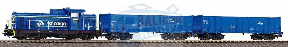 97937 PIKO - H0 - Start set obsahující dieselovou lokomotivu SM 42 a 2 otevřené vozy, kolejivo s podložím, 12 x oblouk. kolej, 6 x rovná kolej, trafo + napájení