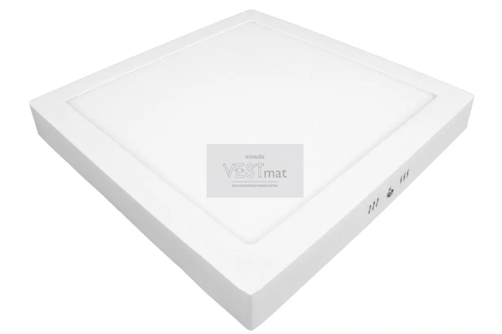 Čtvercový přisazený LED panel 24W. Díky bočnímu nasvětlování nejsou jednotlivé LED diody při rozsvícení viditelné a svítidlo je díky tomu také velmi nízké. LED panel nabízíme ve barvách světla teplá bílá, denní bílá a studená bílá.
