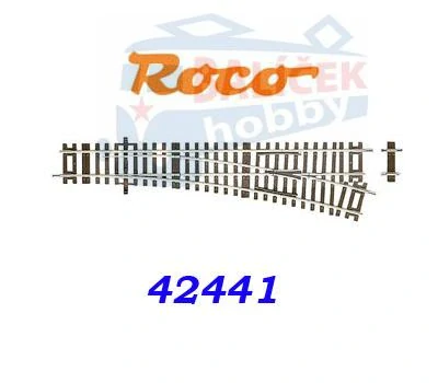 H0 - Roco Line 2,1 mm Výhybka pravá, úhel odbočení 15°, délka 230 mm, R=odbočení 873,5mm, úhel srdcovky 10,8