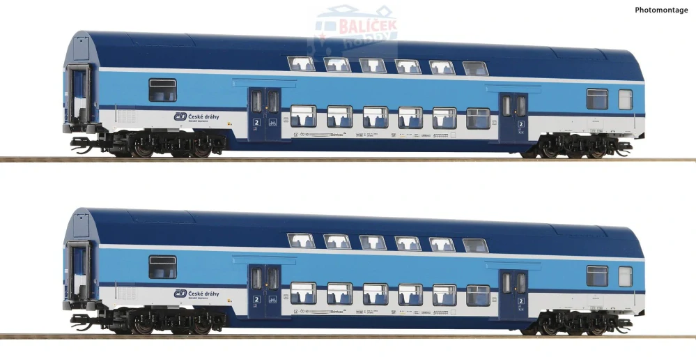 Souprava se dvěma dvoupatrovými vozy typu Bdmteeo Českých státních drah.
