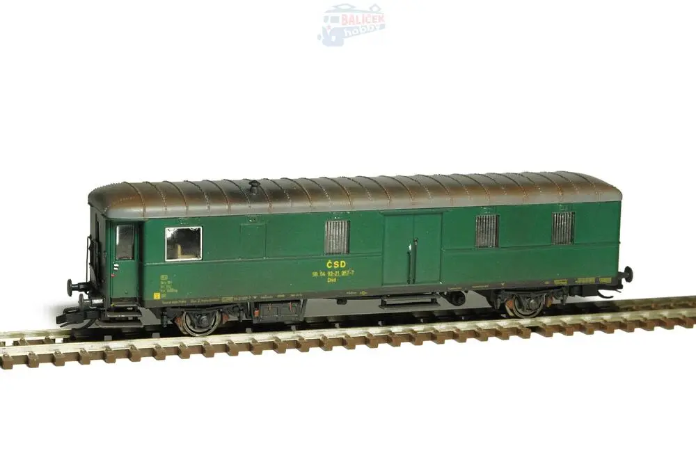 Kompletní plastiková stavebnice služebního vozu v původním provedení se stahovacími okny vlakvedoucího. Obsahuje probarvené plastikové výlisky na sestavení modelu včetně zasklení modelu, kinematik, spřáhel, kvalitních soustružených kovových dvojkolí, kovových leptů, závaží a obtisků s dvojicí provozních čísel. Stavebnice je připravena na zástavbu osvětlení interiéru z naší nabídky. Provozovatel Československé dráhy, IV. epocha.