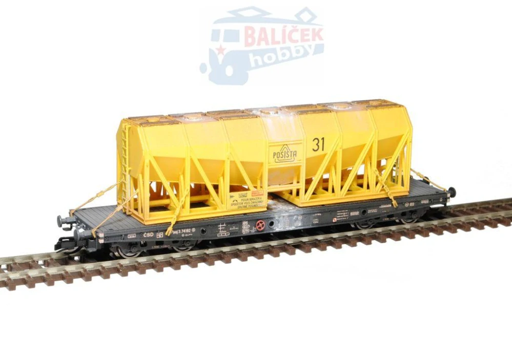 Kompletní stavebnice nádobového vozu Paoj 10 pro přepravu cementu. Obsahuje probarvené plastikové výlisky na sestavení modelu včetně kinematik, spřáhel a kvalitních soustružených kovových dvojkolí, kovové lepty, závaží a obtisky. Obsahuje sadu nápisů pro provoz v III. epoše, variantu pro 50. a 60. léta a několik volitelných motivů, provozovatel Československé dráhy.