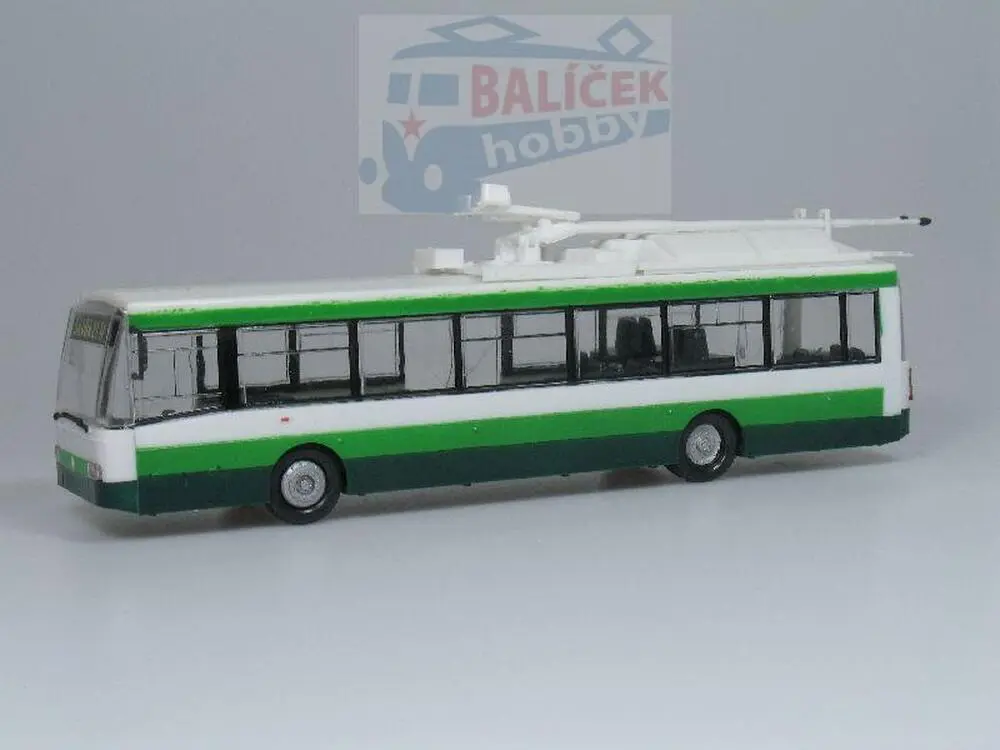 Kompletní plastiková stavebnice trolejbusu – DP Plzeň. Obsahuje probarvené plastikové výlisky na sestavení modelu, kovové osičky a potištěné díly zasklení. Barevná úprava modelu je řešena sadou kvalitních obtisků.