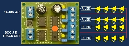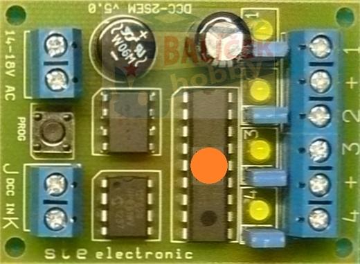 Výstupy dekodéru jsou opatřeny žlutými LED diodami, aby byla možnost jej naprogramovat i bez připojených výstupů a i pro hledání závady pod panelem vidíme stav výstupů.