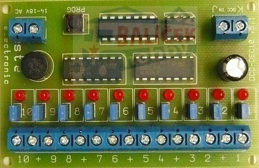 Dekodér má 10 nezávislých výstupů, kterým můžeme přidělit samostatnou adresu, potom spíná a rozpíná každý výstup zvlášť, nebo můžeme několika výstupům přidělit stejnou adresu.