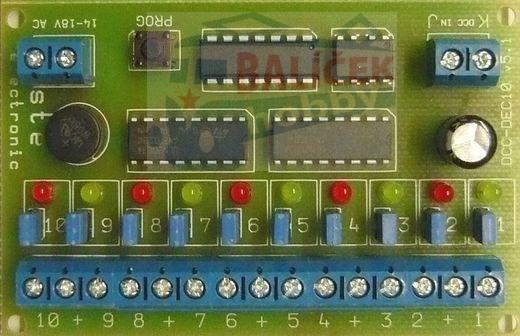 Dekodér má 5 dvojic nezávislých výstupů, kterým můžeme přidělit samostatnou adresu, výstupy jsou opatřeny LED diodami, aby byla možnost, aby byla možnost naprogramovat dekodér i bez připojených návěstidel.