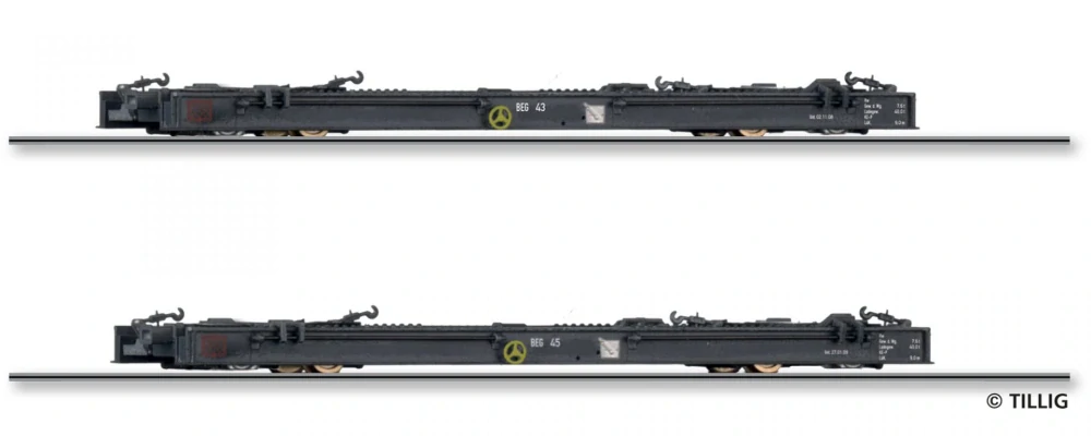 Sada nákladních vagónů DR, skládající se ze dvou úzkorozchodných kolejových vagónů Rf4, éra III Model v měřítku H0m.