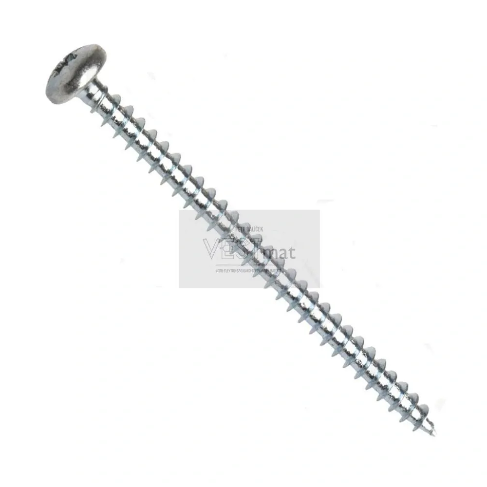 Univerzální vrut, půlkulatá hlava, celý závit, drážka Pozidrive, zinek bílý, 6x25 mm