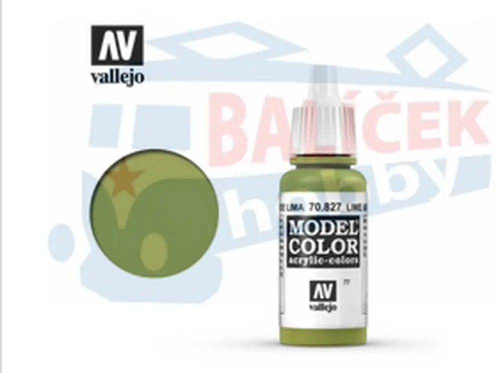 Barva Vallejo Model Color 70827 Lime Green (17ml) Popis Vallejo Model Color je řada akrylových barev speciálně vyrobených pro plastikové modelářství. Barvy jsou krycí, na vodní bázi, určené pro nanášení štětcem. Dobře drží na pryskyřici, plastech a kovu. Mohou být mezi sebou míchány. Po zaschnut... celý popis