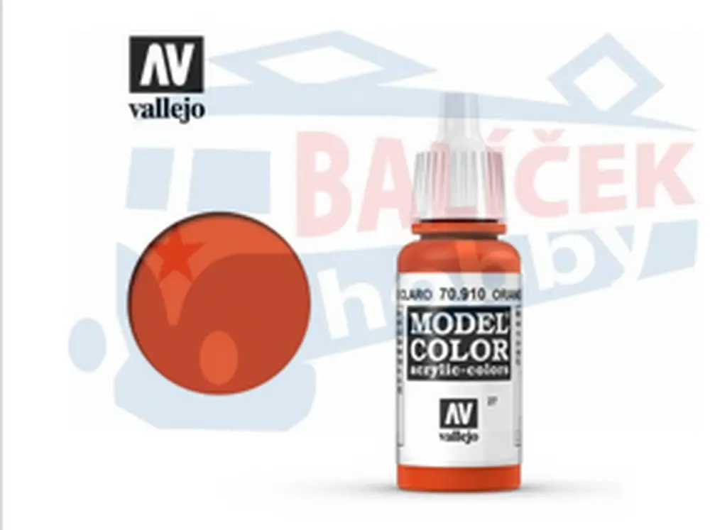 Barva Vallejo Model Color 70910 Orange Red (17ml) Popis Vallejo Model Color je řada akrylových barev speciálně vyrobených pro plastikové modelářství. Barvy jsou krycí, na vodní bázi, určené pro nanášení štětcem. Dobře drží na pryskyřici, plastech a kovu. Mohou být mezi sebou míchány. Po zaschnut... celý popis