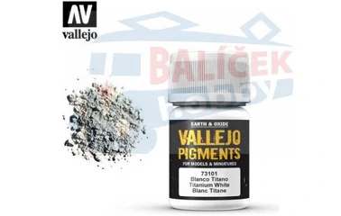Vallejo Pigments 73101 Titanium White (35ml)  Popis Pigmenty se používají pro vytvoření efektu zvětrávání a stárnutí povrchových úprav vozidel, pancéřování, opevnění a u staveb. Jsou ideální pro vytváření nahromaděného prachu, nečistot a bahna, které vznikají časem a přirozenou erozí. Pigmen... celý popis