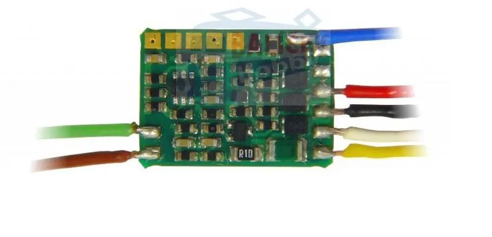 Funkční dekodér pro ovládání osvětlení a dalších funkcí v lokomotivě, řídícím voze nebo v osobních vagónech. Funkční výstupy mohou být směrově závislé. Dále je možné ovládat pomocí tohoto dekodéru 2 serva. Přidělení funkčních výstupů funkčním tlačítkům je samozřejmostí. Připojení pomocí vodičů