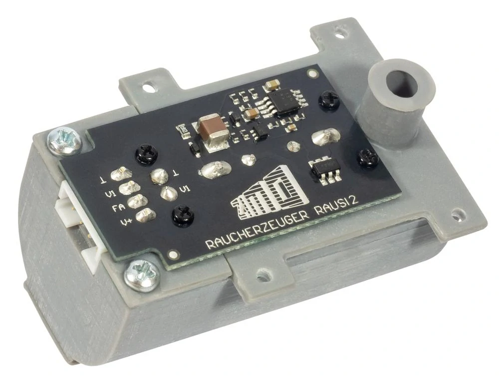 Jednoduchý generátor kouře RAUSI2 je vhodný pro použití s dekodéry ZIMO pro velké modelové železnice, zejména u modelů Gauge 0. Stejně jako RAUSI1 je i RAUSI2 vybaven topným tělesem a malým ventilátorem. Teplotní senzor chrání topné těleso před přehřátím a poškozením, když je nádrž prázdná. Tuto nádrž lze snadno plnit shora komínem a i přes menší rozměry RAUSI2 má stejný objem 4 ml. Aby se však zabránilo přeplnění, měla by se plnit pouze 3,5 ml.